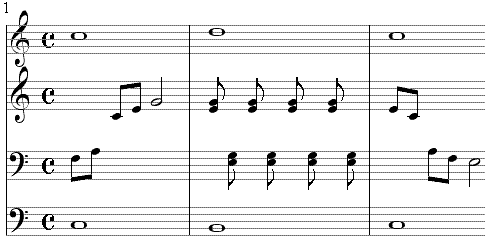 setzen, stehen bis zu sechsstimmige polyphone Notenzeilen zur